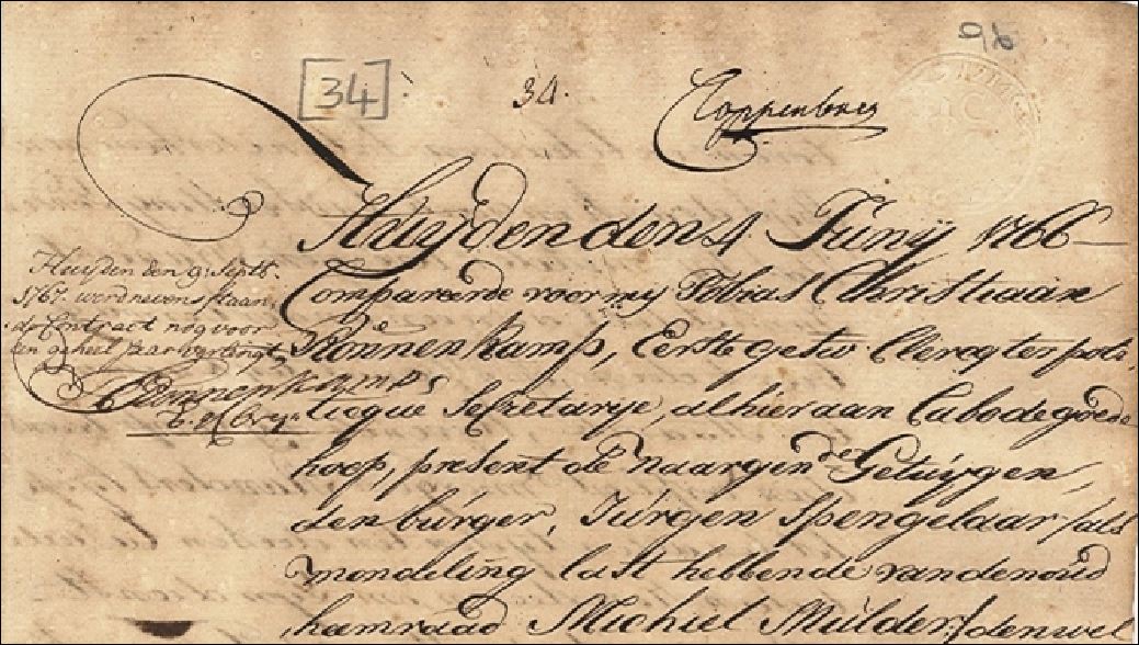 Contracts (1766): CJ 2901 ref. 34, pp. 96-98 - oud heemraad Michiel Mulder :: Johan Hendrik Randers van Landscroon